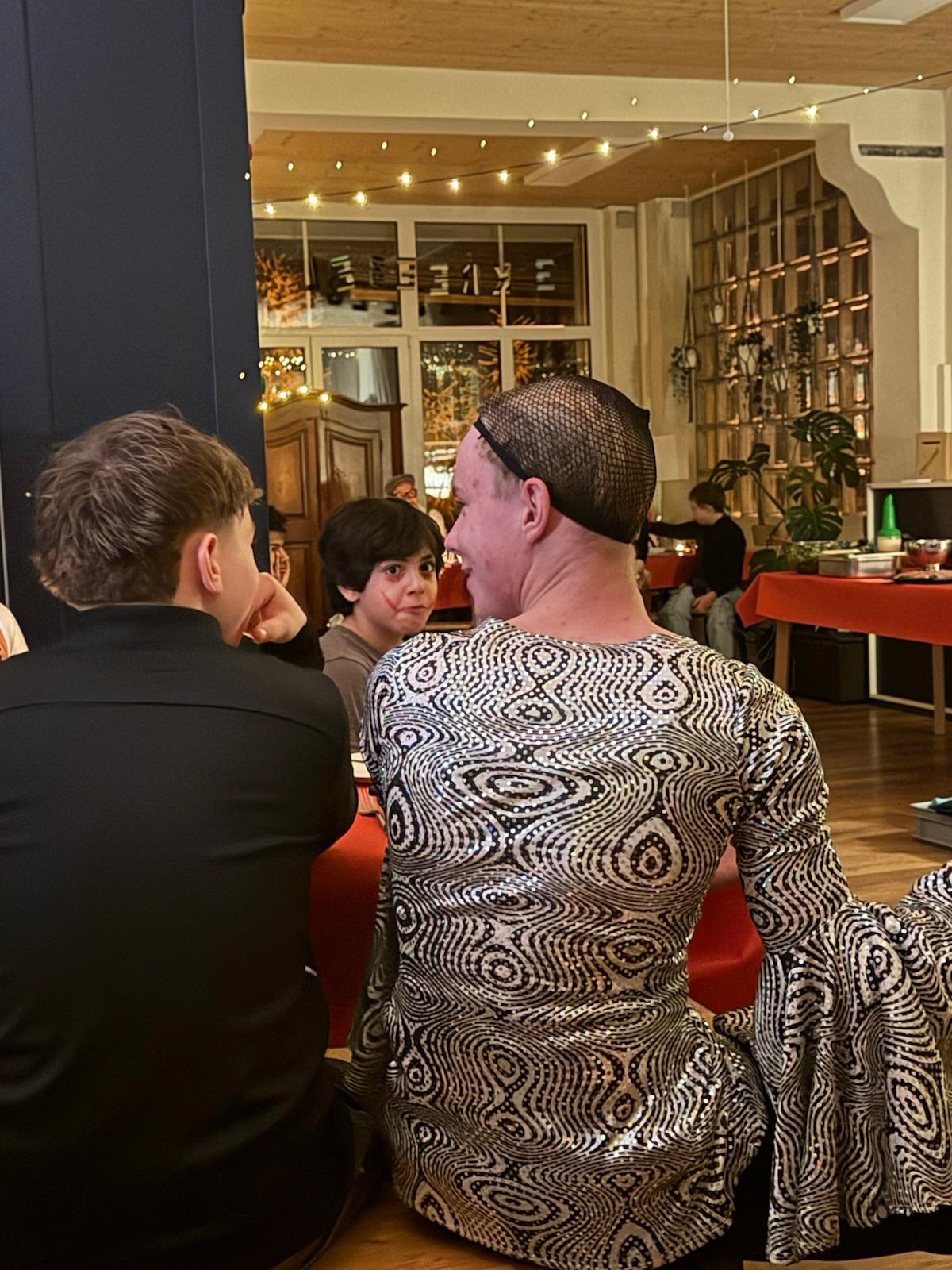 Nach rund 5 Jahren wurde Marijn Stucki vom Diapason verabschiedet – hoffentlich nimmt er dann seine geplante Velotour ohne die voluminöse Perücke in Angriff. Und sogar 28 Jahre lang war Sacha Baumgartner im Internat tätig, vom Praktikanten bis zum Standortleiter. Als Geschenk erhielt der passionierte Eishockeyspieler ein Dress mit Lieblingsnummer und Unterschriften aller Schüler und Mitarbeiter und hatte ab diesem Moment ebenfalls eine passende Verkleidung.