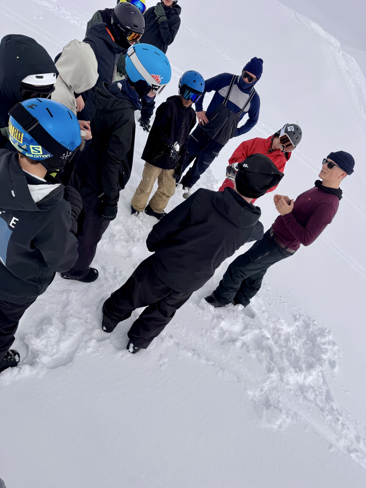 Als krönenden Abschluss folgte eine gemeinsame Partyabfahrt. Diese zeichnete sich durch Musik, kleinere Sprünge im Schneesulz und viel gute Laune aus. Gemeinsam ging es so Richtung Baustopp.