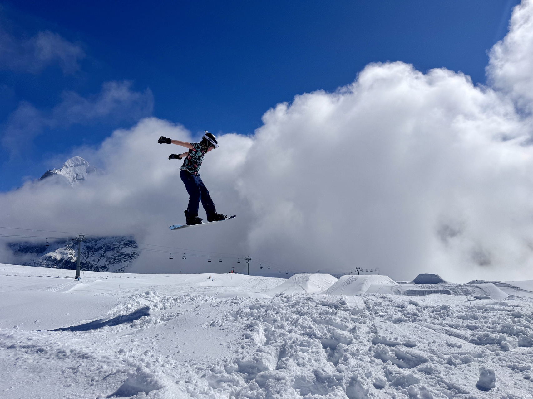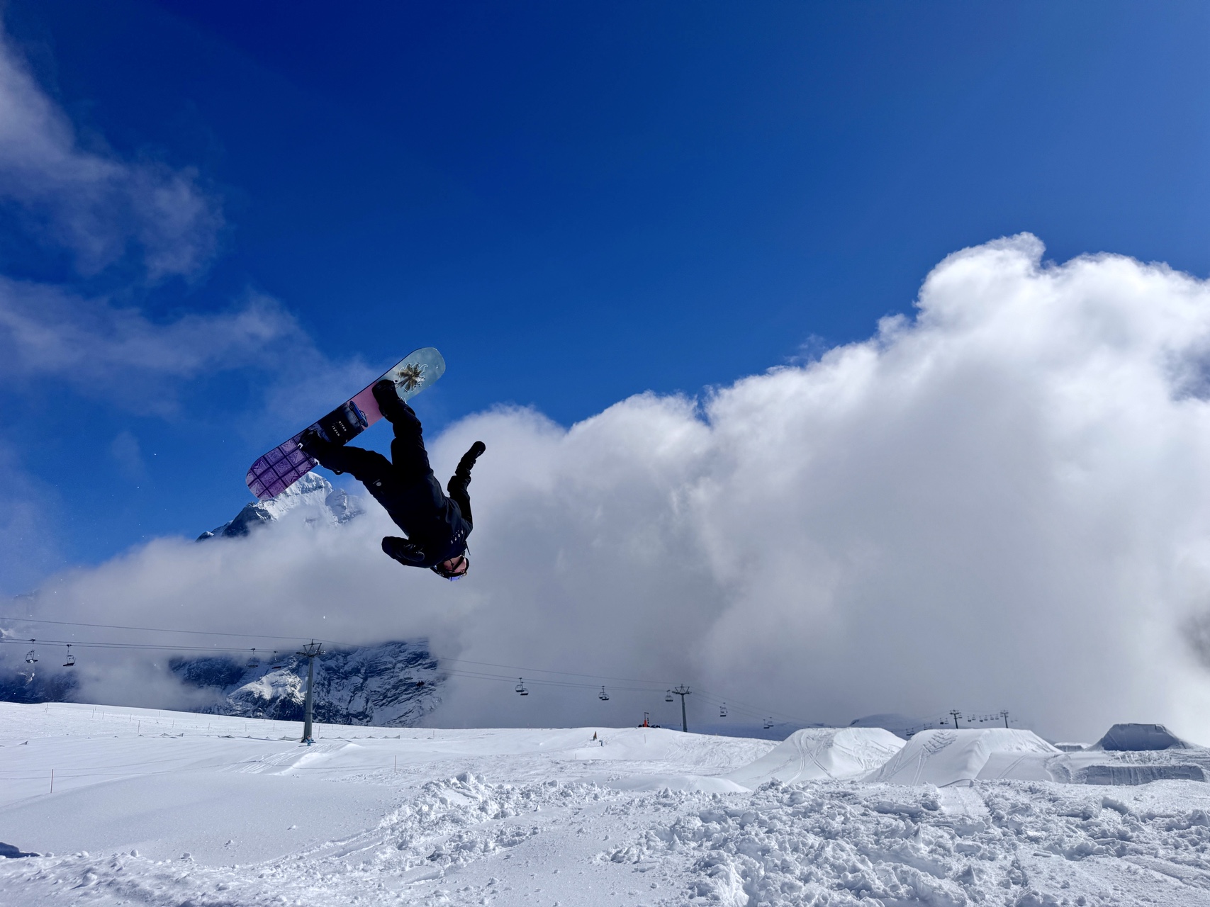 Am Nachmittag stand ein zweiter Wettkampf bei den Schanzen im Funpark auf dem Programm. Ziel war es, möglichst schöne und kreative Sprünge zu zeigen. Zu dröhnenden Bässen gab es dabei alles zu sehen – von Grabs bis hin zu Backflips.